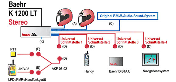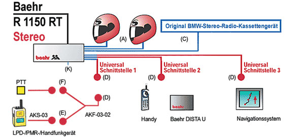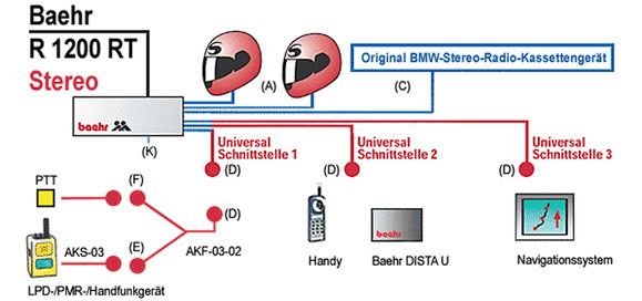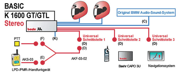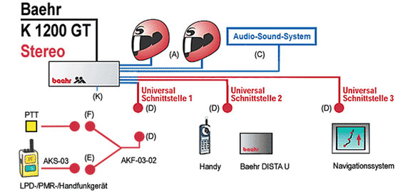 Mit ihren drei Stereo-Universalschnittstellen haben sie die Möglichkeit Ihre K 1200 GT