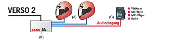 Zwei getrennte Audioeingänge für das Boot und Fahrer/Sozius erhalten den Familienfrieden auch bei der hundertsten Wiederholung der Kindergeschichten oder -Lieder.