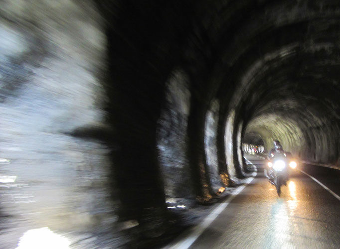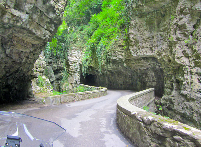 ging´s dann die schmale Straße hinauf - durch enge Windungen, Serpentinen auf Felsvorsprüngen, diverse Tunnel und Schluchten...